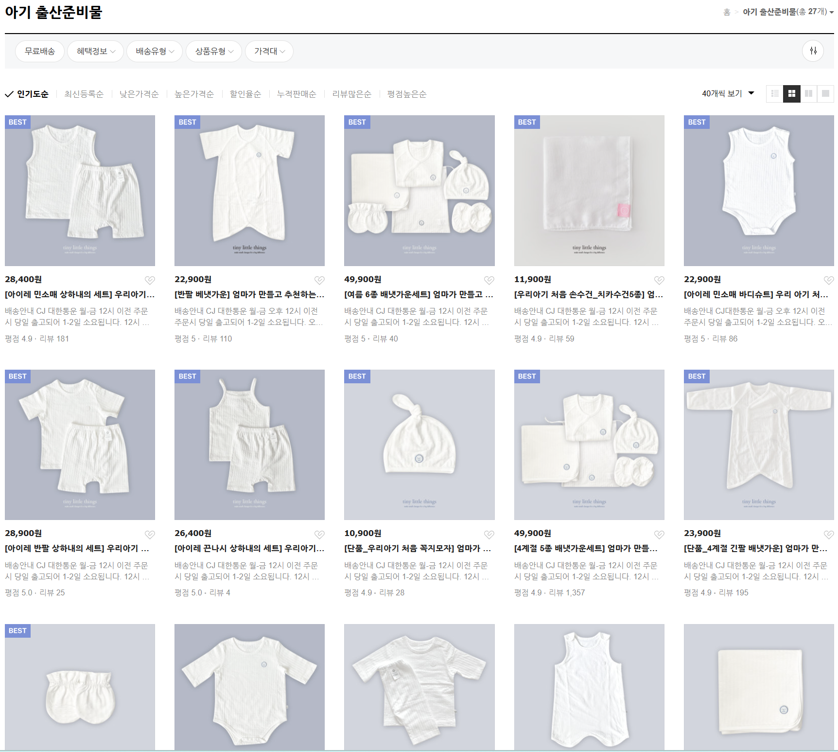 타이니 리틀 띵스에서는 아래와 같이 아기 출산 준비물 카테고리가 별도로 있는데요.