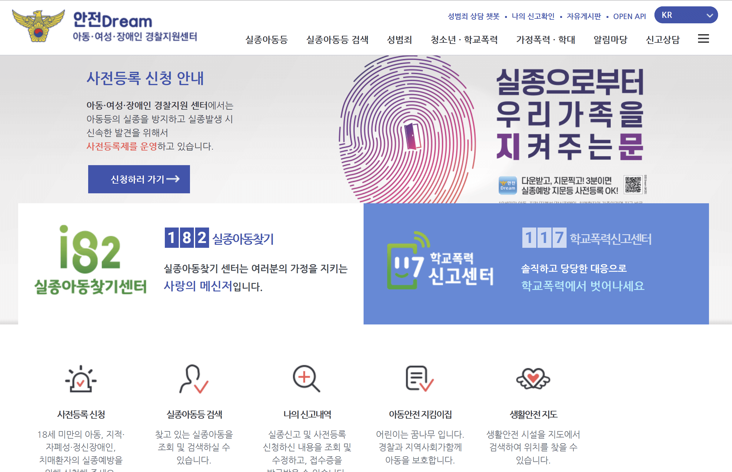 미아방지 지문등록은 안전 Dream이라는 사이트를 통해 사전등록 할 수 있습니다.
