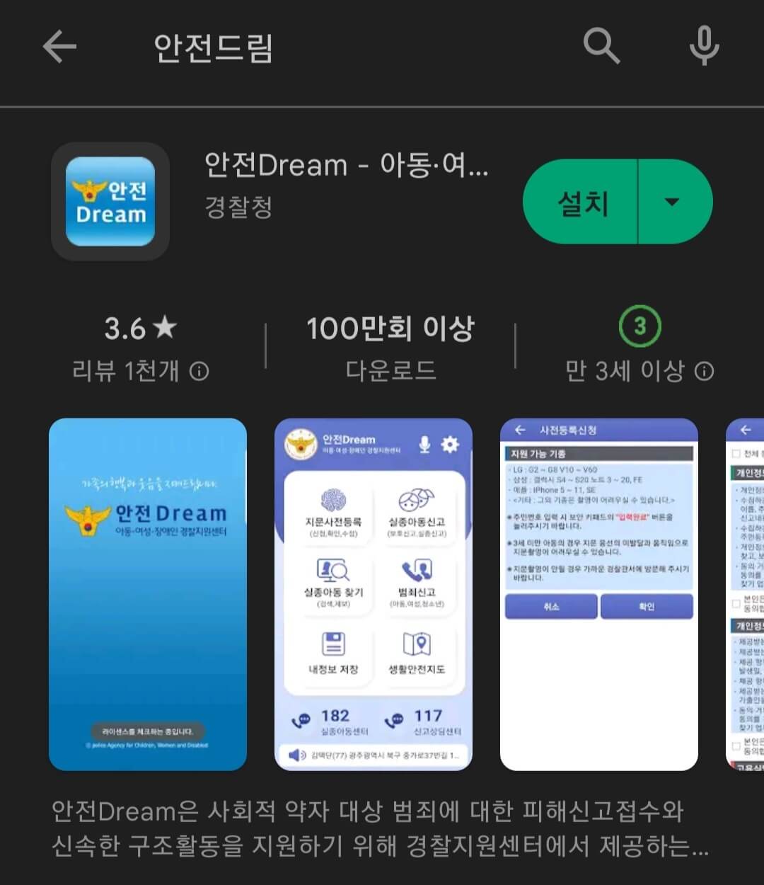안전 Dream은 어플로도 이용할 수 있습니다. 핸드폰 앱스토어에 가서 안전드림을 검색하면 아래와 같은 앱이 검색됩니다.