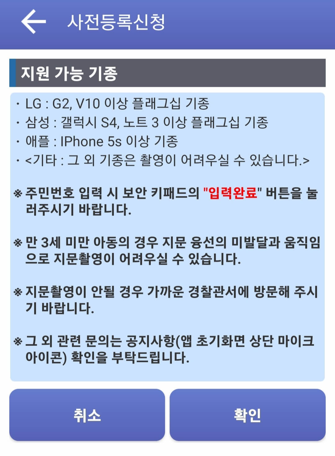 개인적으로 저는 앱을 통해 아기 지문 등록을 하는게 쉽지 않았는데요. 보통 만 36개월 미만의 어린아이들의 경우 지문선이 명확하지 않아서 개인이 지문을 등록하는 것이 쉽지는 않다고 해요.