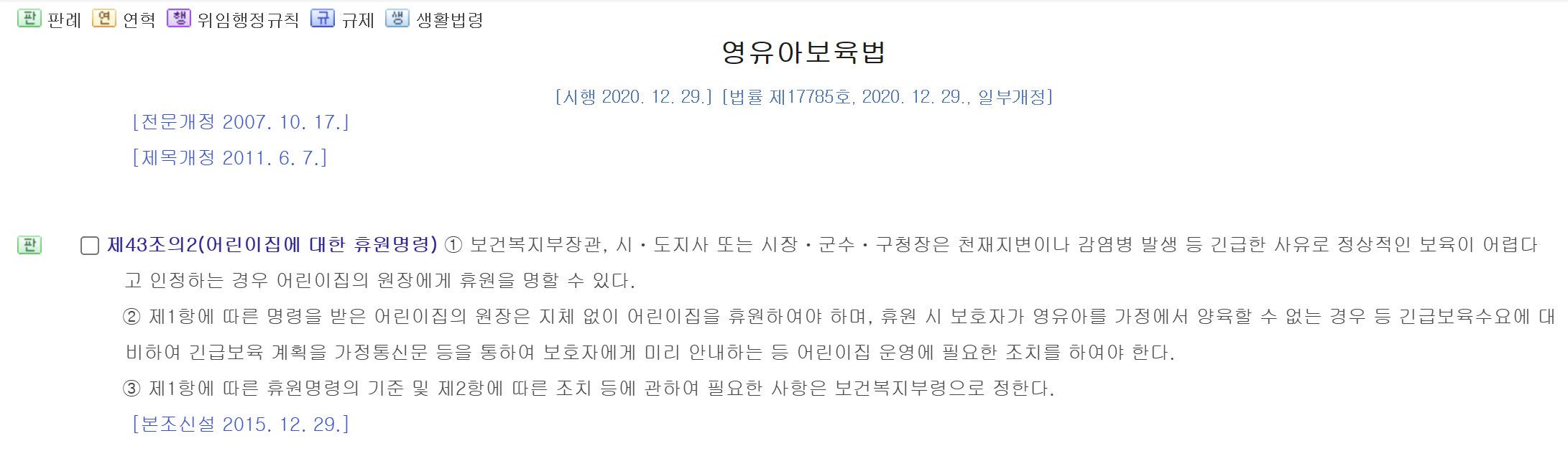 | 어린이집 | 휴무 (원장 재량, 보호자가 보육을 원할 시에는 당직 교사가 '통합 보육'을 해야 함) |